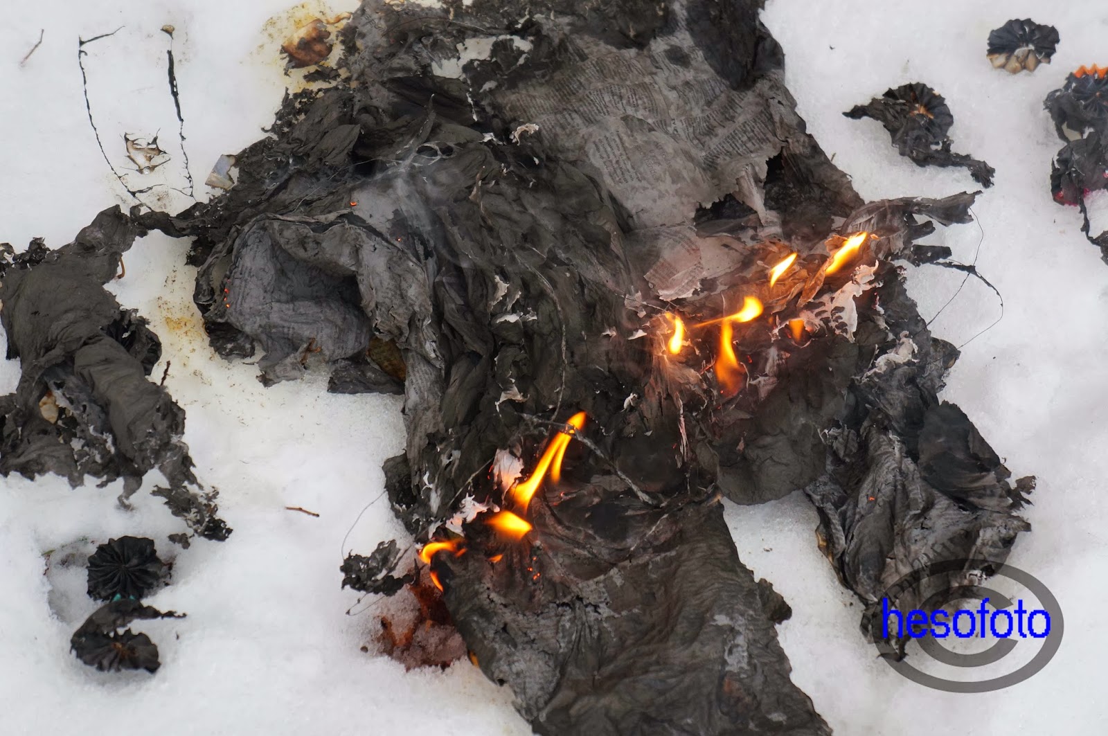 Nåväl den har hängt med ett tag nu. Har flera gånger tänkt slänga den, men folk i min närhet har sagt att "det kan du ju inte göra"! Men en dag när jag var ensam hemma fick jag nog av att den hela tiden är i vägen och bara samlar damm. Så jag tog med mig den ut i trädgården och tände eld på den. Det gick snabbt kan jag säga. Jag hann knappt med att fota det hela. Nu är den ett minne blott, men jag har fått ny fotokonst att hänga på väggen! :)